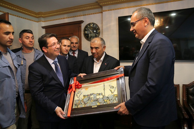 Bir dizi ziyaret ve incelemelerde bulunmak üzere memleketleri Aksaray'a gelen Gümrük ve Ticaret Bakanı Cenap Aşçı ve Enerji ve Tabii Kaynaklar Bakanı Ali Rıza Alaboyun, Ak Parti Grup Başkan Vekili ve Aksaray Milletvekili İlknur İnceöz, Aksaray Milletveki Nevzat Palta, Vali Şeref Ataklı ve beraberindeki heyetle birlikte Aksaray Belediye Başkanı Haluk Şahin Yazgı’yı makamında ziyaret etti.
