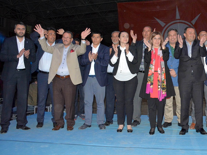 Ak Parti İl Başkanı Abdulkadir Karatay ise konuşmasında “ Seçime az birgün kaldı. Allah nasip ederse Aksaray’da 3-0’ı ilan etmiş olacağız. Biliyorsunuz 2015 Haziran seçimlerine Başkanımızın da söylediği gibi iki parti giriyor. Ak Parti ve diğerleri. Geçtiğimiz Perşembe günü Sayın Cumhurbaşkanımız Aksaray’a teşrif ettiler O gün biz insanlarımızı meydanlara sığdıramadık. Sadece meydanlara değil sokaklara sığdıramadık. Helikopter indiği andan itibaren merkeze gelene kadar sanırsınız tüm şehir Sayın Cumhurbaşkanımızı selamlamak üzere yollara dizilmiştir. Gerçekten duygulanmamak elde değil. Biz Cumhurbaşkanımızı şöyle tanıdık. Haksızlığa, zulme ve zalime karşı dik duran adam. Onu uzun adam diye tarif ediyorlar ya ben onu dik duran adam diye tarif ediyorum. Çünkü millet adına dik bir duruş sergileyen adam. Onun için 7 Haziran seçimlerinde kapı kapı dolaşacağız. Eşimizi, dostumuzu, komşumuzu yeniden arayacağız. Bu memleket meselesidir.Yeni Türkiye ile eski Türkiye’nin ayrıldığı nokta.Bu sadece bizim değil hepimizin geleceğidir” dedi.