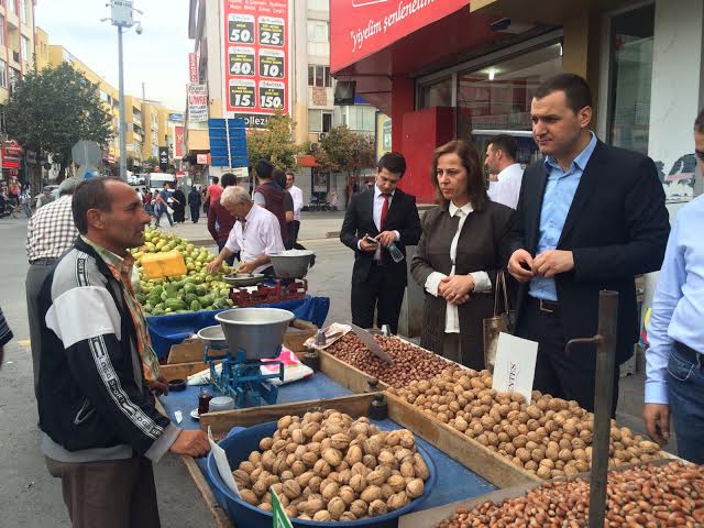 Adaylar 1 Kasım Seçimleri çalışmalarını hız kesmeden sürdürüyor. Çarşı merkezde bulunan esnafları ziyaret eden MHP MYK Üyesi Aksaray Milletvekili Turan YALDIR basına önemli açıklamalarda bulundu. “Bismillah” diyerek başladığımız seçim çalışmalarına, Aksarayımıza, sevdamıza hizmet yolunda girdiğimiz bu yolda, inançlı bir şekilde azim ve kararlılıkla devam ediyoruz. Şuan 7 Haziran seçimlerinin öncesinde ve sonrasında olmuş olduğumuz yerdeyiz. Seçimden sonra milletvekilliği sıfatının büyülü havasına kapılarak vatandaşımıza sırtımızı dönmedik. Bunun getirisi ile yüzümüz ak alnımız açık. Dün de onların yanındaydık bugün de onlarla birlikteyiz. Çalışma arkadaşlarımız Av. Nilgün TOSUN ve Av. Ayşe Deniz Ay’da bizler ile birlikte bu heyecana ortak oluyorlar. Onlarla birlikte Aksaray’da şahlanışa geçen Milliyetçi Hareket’i yüce Allah’ın izniyle 2 Kasım’da iktidara taşıyacağız.”dedi.