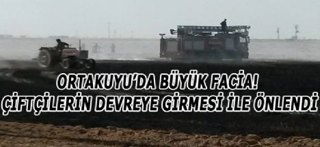 Yeni bicilen arpa tarlasinda saman yaparken alev alan tarlayi ortakuyulu ciftciler seferber oldular. yangın çiftçiler yardımı ile söndürüldü.
